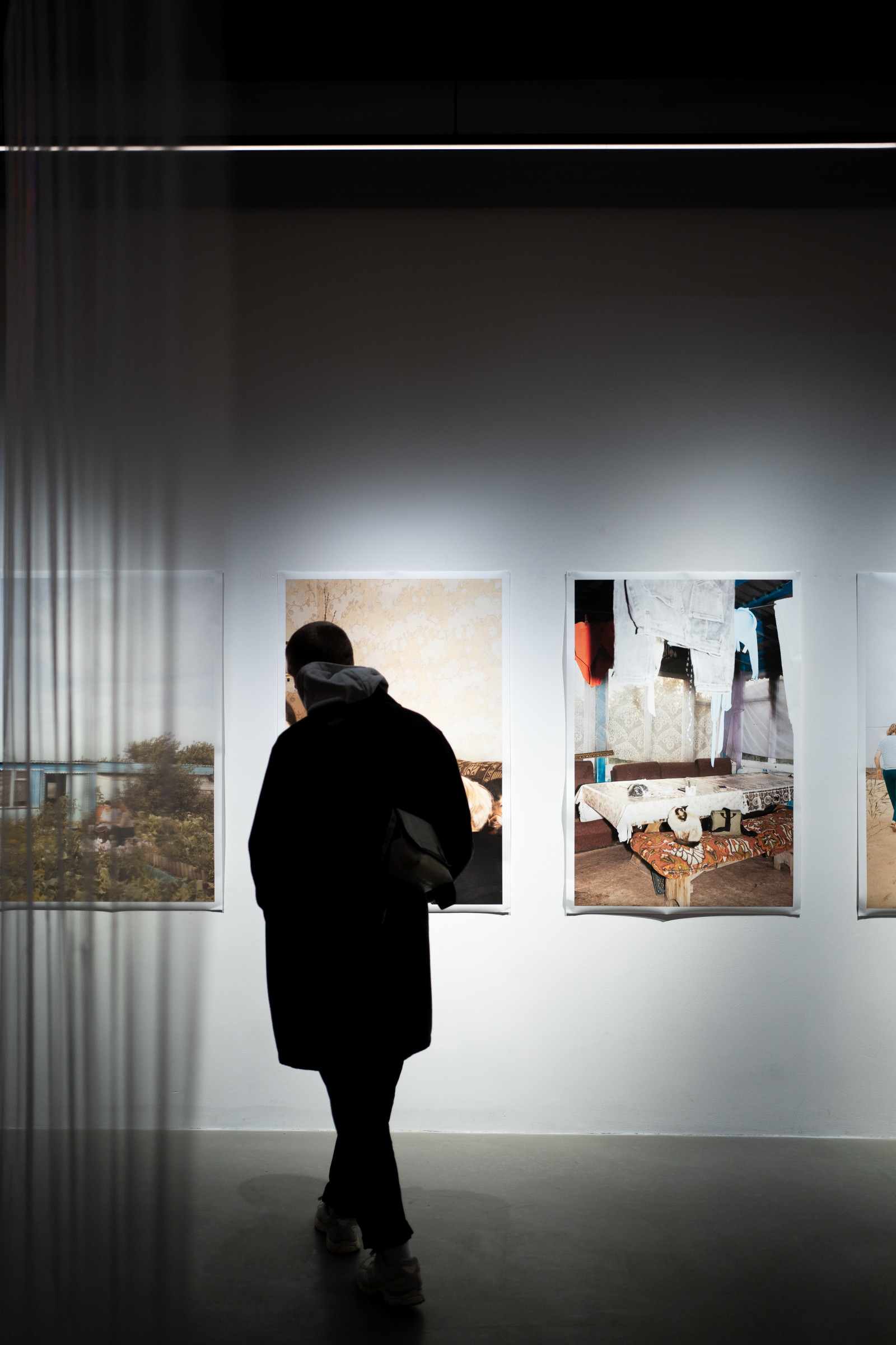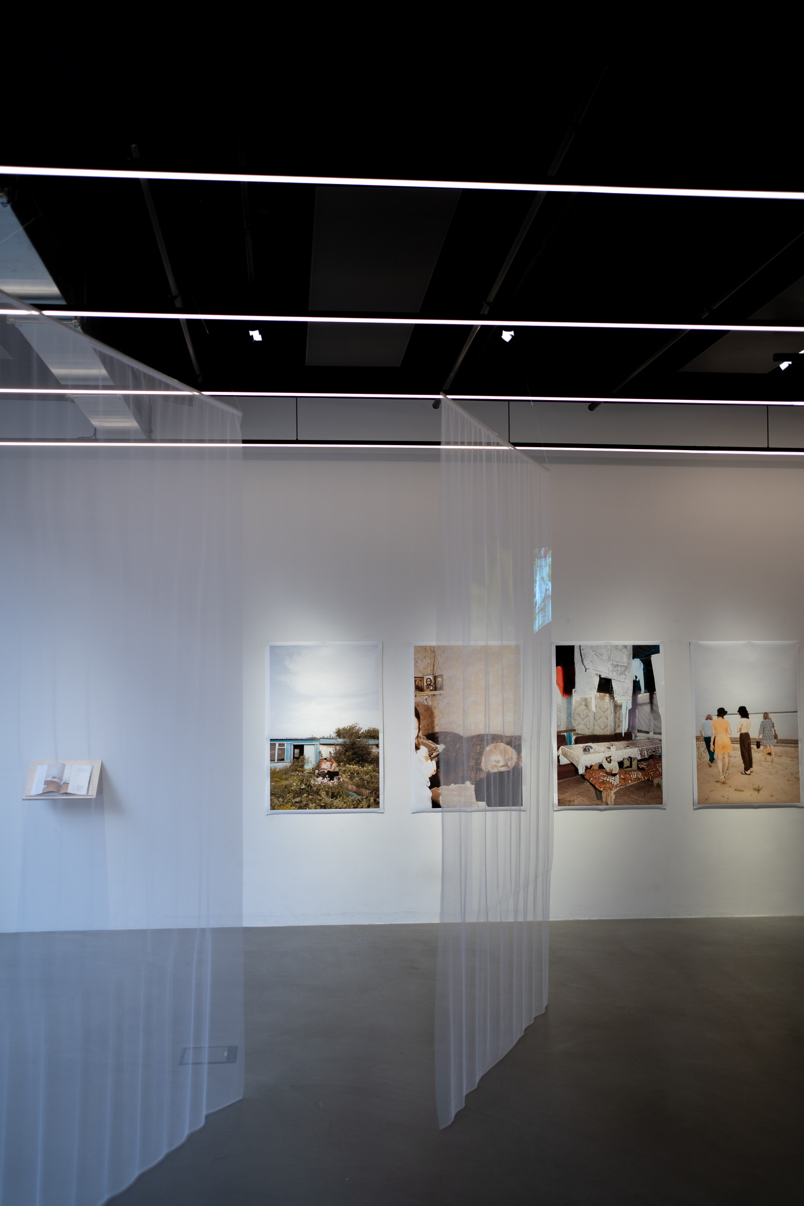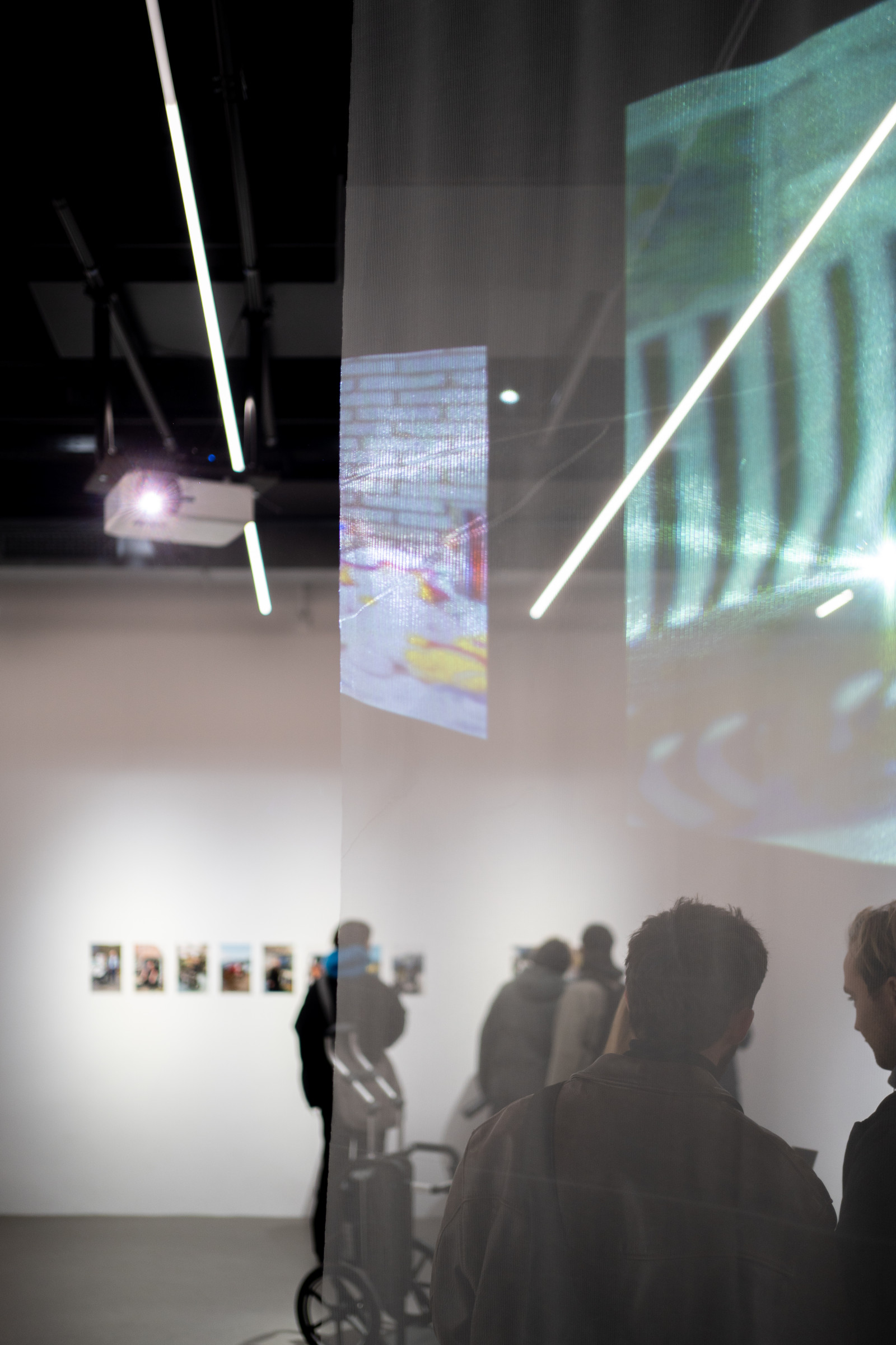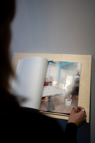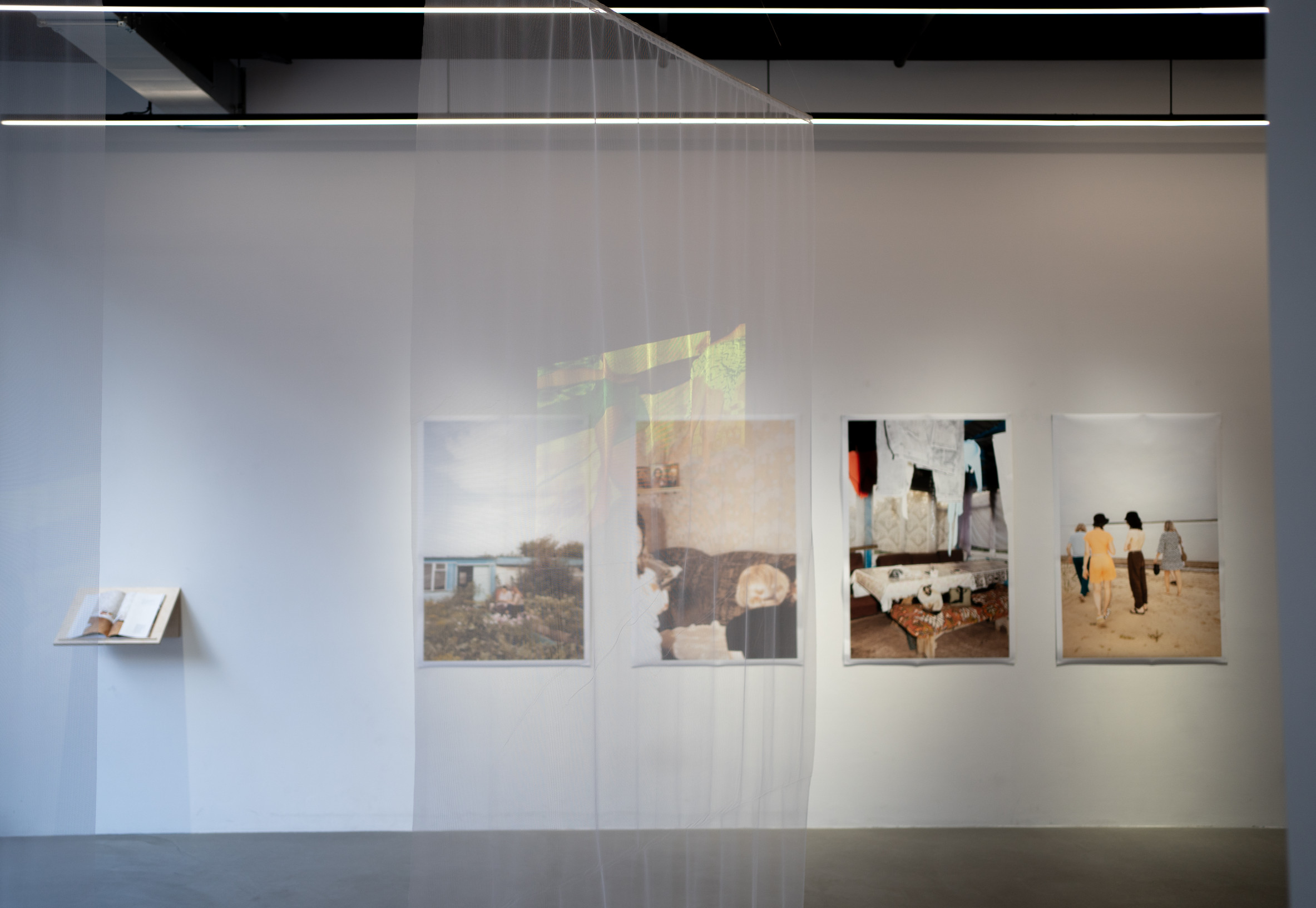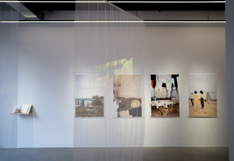 Die Aufnahmen aus den Jahren 2003 und 2023 ersetzen einander dabei nicht, sondern treten nebeneinander auf – auf den transparenten Buchseiten ebenso wie in den durchscheinenden Projektionen als auch in großen Drucken an der Wand. So sammeln sich immer mehr Bilder an und ermöglichen es, dass all diese eingefrorenen Augenblicke an einem Ort und in einer Zeit gleichzeitig gegenwärtig sind – oder zumindest für einen Moment die Zwischenräume erfahrbar machen.