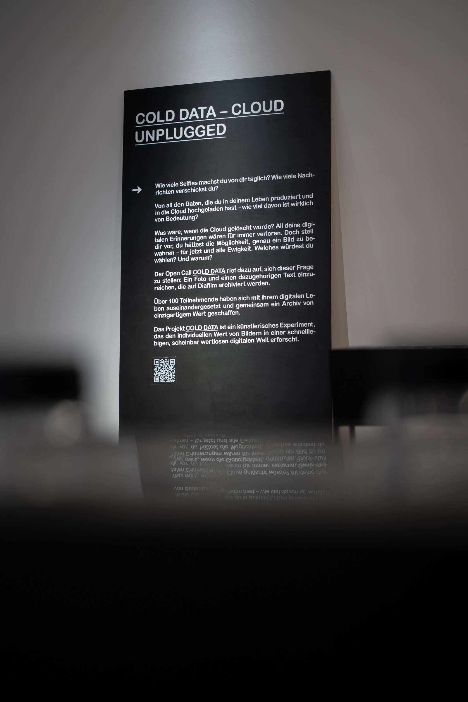 Das Projekt »Cold Data« von Patrick Wüst verfolgt das Ziel, ein alternatives Archiv zu schaffen – unabhängig von privatwirtschaftlich geführten Unternehmen. Dieses Archiv soll das World Memory um die persönlichen und individuellen Erfahrungen jedes Einzelnen erweitern. Dabei kommt die Cold-Data-Technik als Speichermethode zum Einsatz. Vom 15. Dezember 2024 bis zum 10. Februar 2025 dauerte ein öffentlicher Aufruf an, der dazu einlud, sich mit dem eigenen digitalen Erbe auseinanderzusetzen.