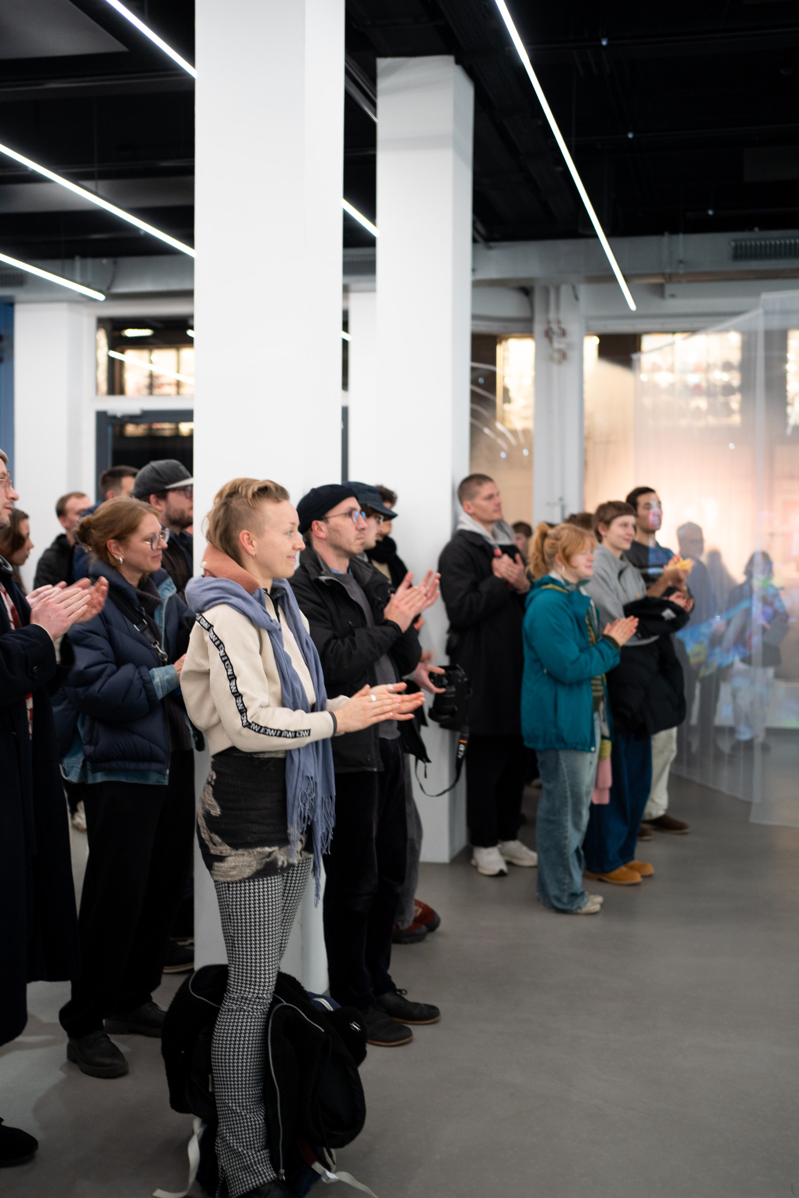 Um dieses Gefühl der Lücke, von (Un-)Sichtbarkeit zu übertragen, entwickelte Janson die Idee, das Buch in eine Installation zu übertragen. Sie projiziert die Archivfotografien in den Raum, wo sie auf flächige semiluzide Netzstrukturen fallen, die je nach Raumhelligkeit die Fotografien einfangen und gleichzeitig durchlassen.