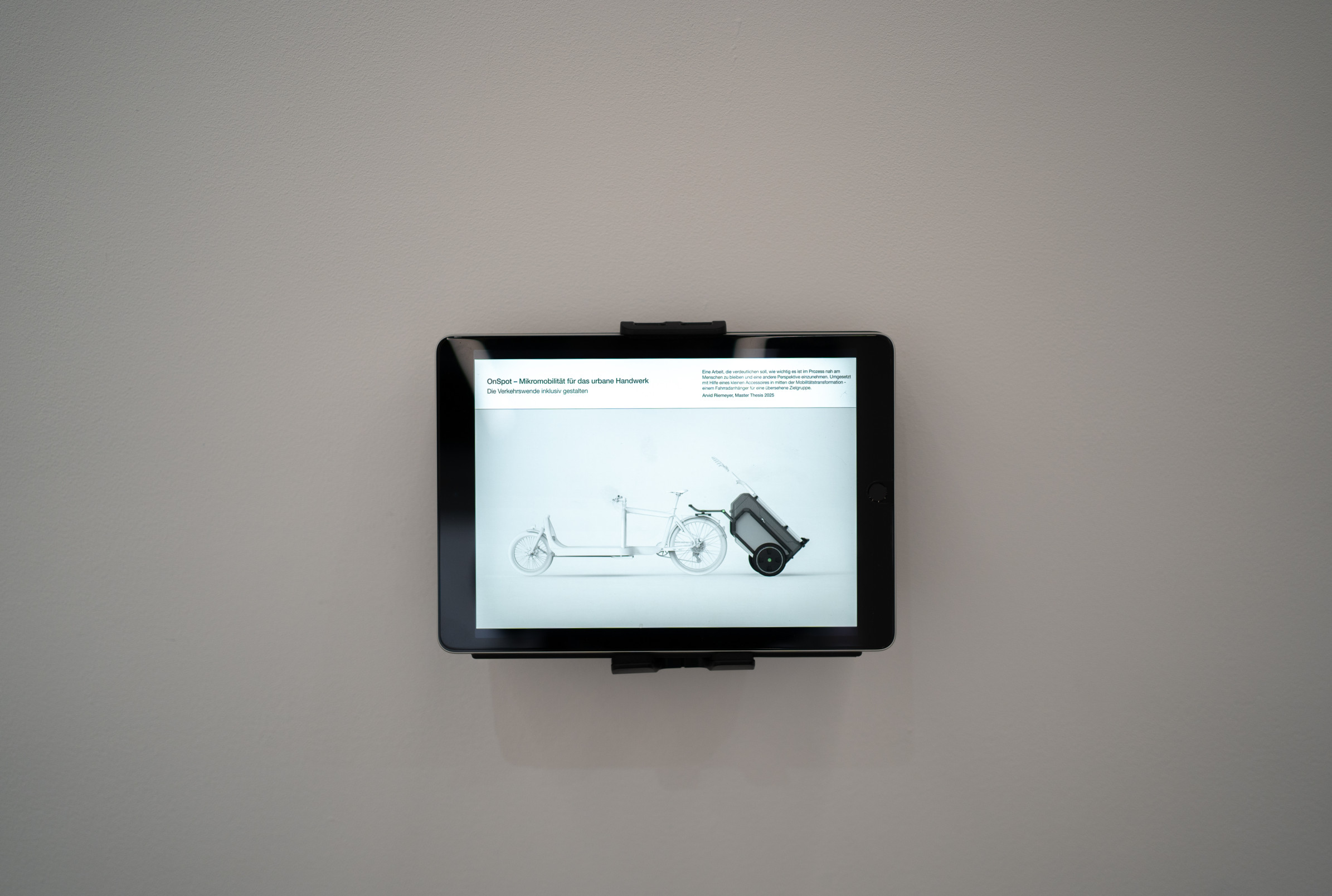»Eine Arbeit, die verdeutlichen soll, wie wichtig es ist, im Prozess nah am Menschen zu bleiben und eine andere Perspektive einzunehmen. Umgesetzt mithilfe eines kleinen Accessoires in mitten der Mobilitätstransformation - einem Fahrradanhänger für eine übersehene Zielgruppe.« Arvid Riemeyer