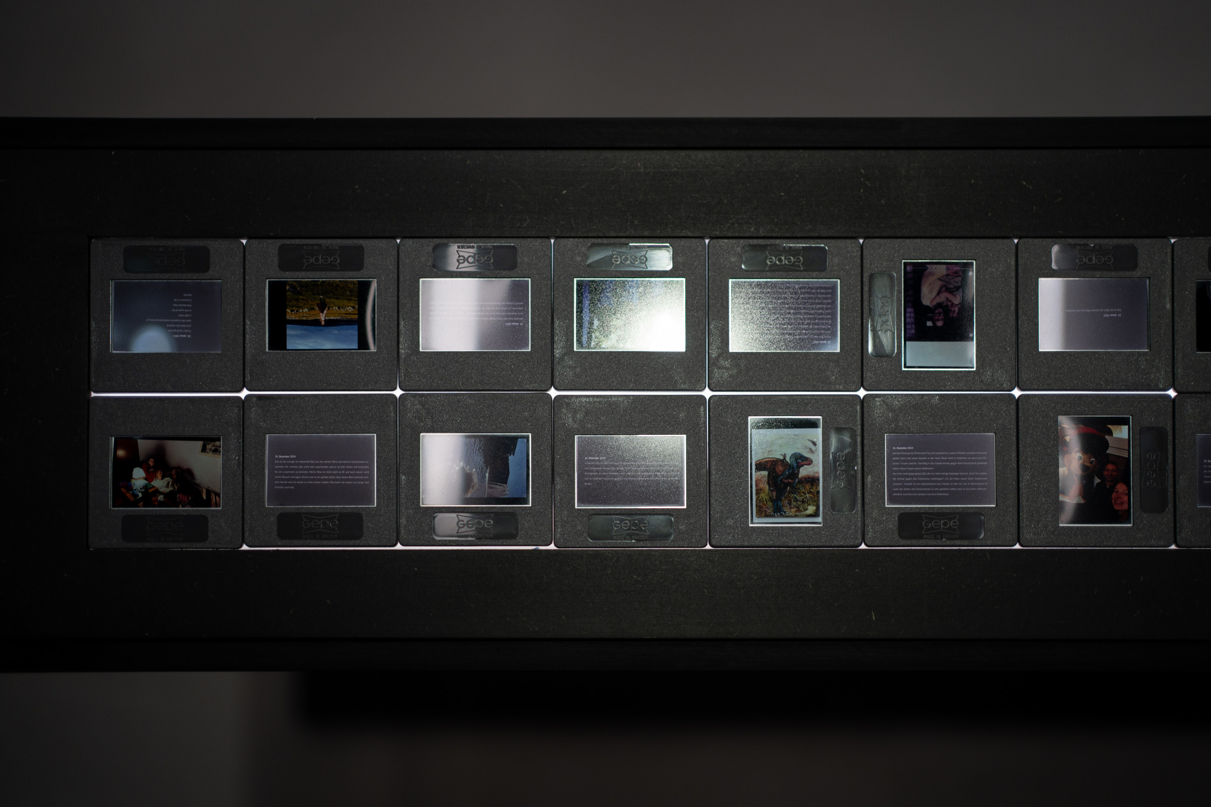 *Cold Data – Cloud unplugged, 2024, 116 Dias, Diafilm & Diarahmen, Leuchtvitrinen