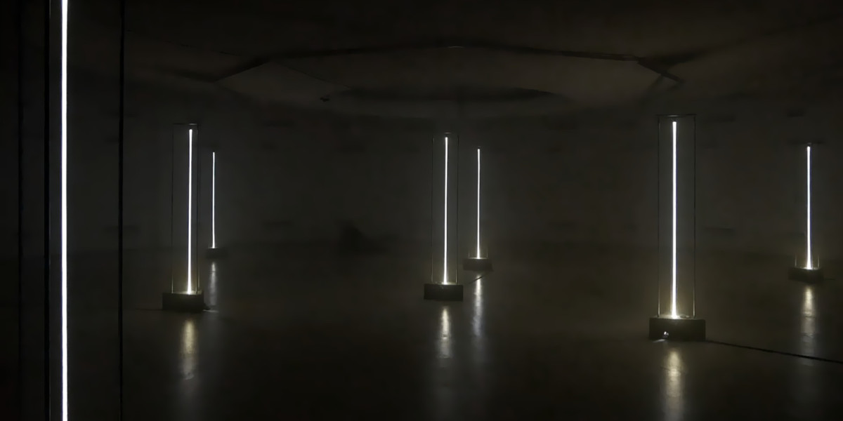 Diese Licht- und Klanginstallation basiert auf der fortlaufenden Forschung der Künstler:innen zu dynamischen Architekturen aus soliden und ephemeren Medien. In einem komplexen Geflecht aus licht- und schallabstrahlenden Knoten treffen innovative und antike Technologien aufeinander. Skulpturale Lichtstrahlen formen ein pulsierendes Feld, das durch choreografierte Lichtprojektionen gesteuert wird und als ästhetisches Element die immersive Architektur erlebbar macht.