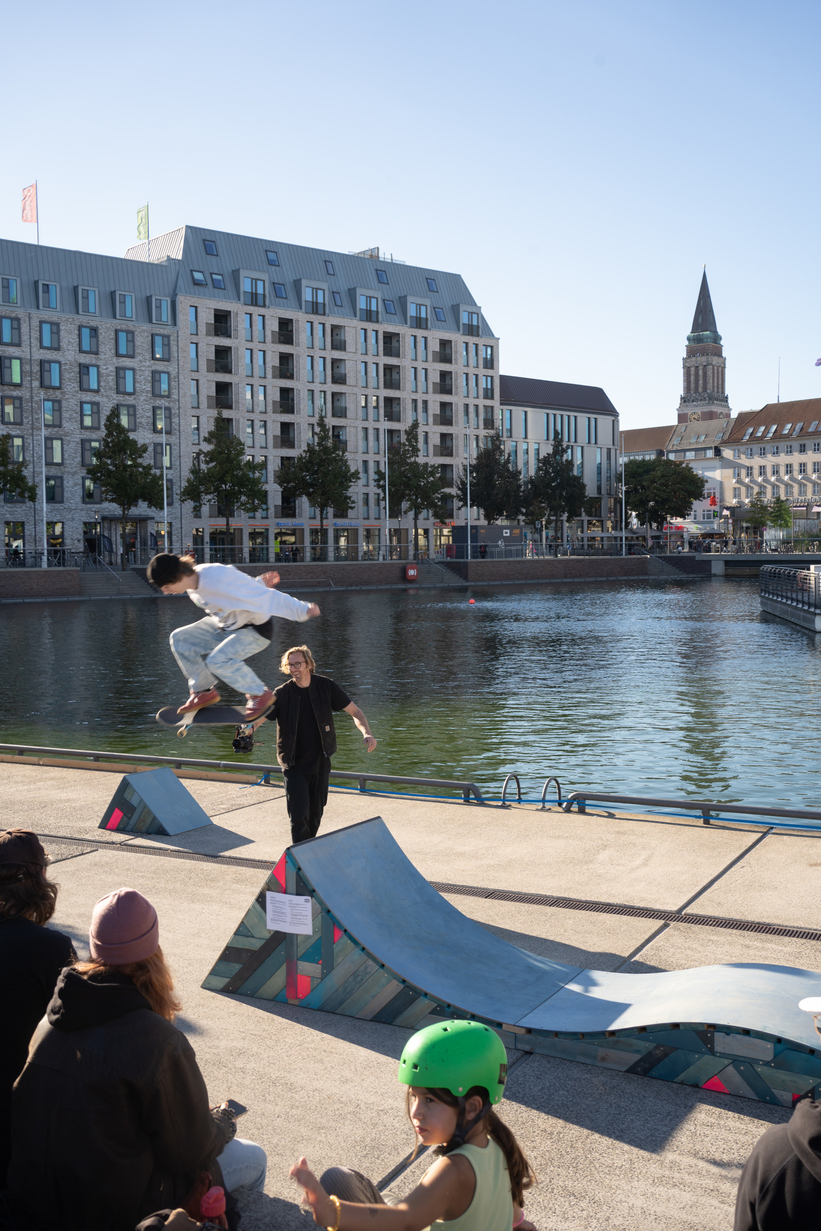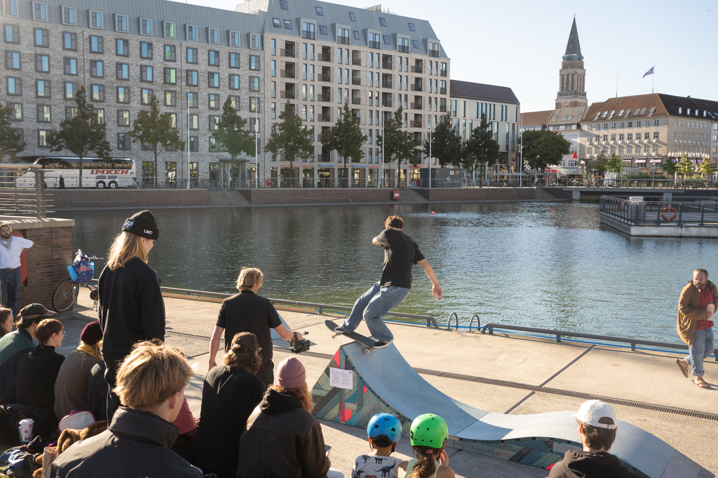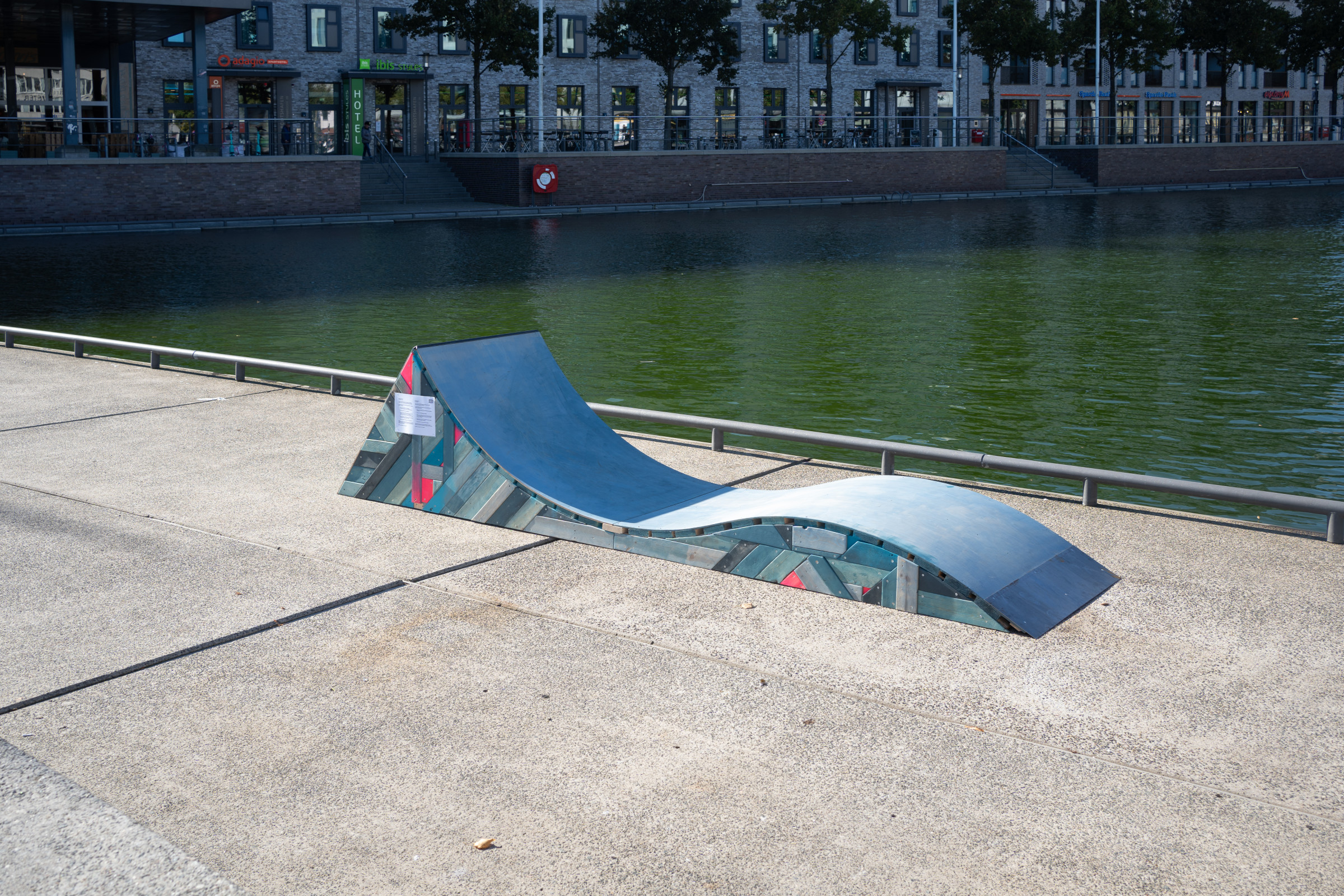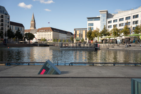 Anders Prey möchte mit seiner Skulptur zu einem offenen Umgang mit Skateboardkultur einladen und das Meer symbolisch zurück in die Innenstadt Kiels holen. Einst bildete der Bootshafen und der Kleine Kiel einen Seitenarm der Kieler Förde, das Meerwasser floss natürlich und umschloss nahezu den gesamten Altstadtbereich. Kanagawa’s Revenge macht auf die heutige Trennung aufmerksam und ruft uns ins Gedächtnis, wie Eingriffe in die Infrastruktur weitreichende Folgen für den Fluss und die Lebensadern einer Stadt haben.