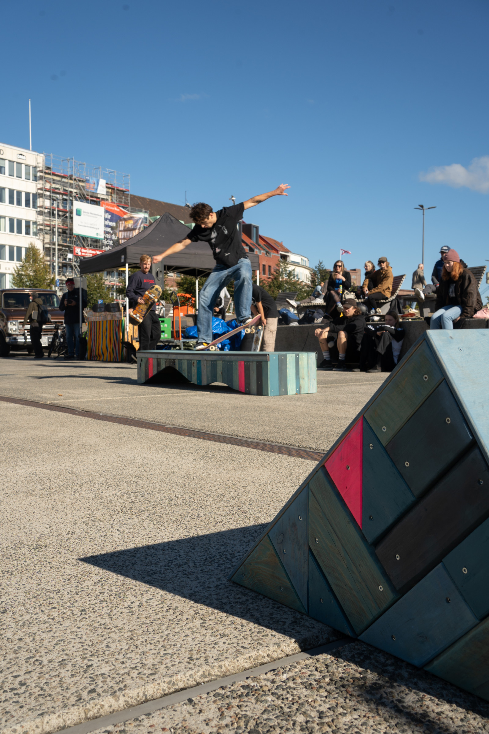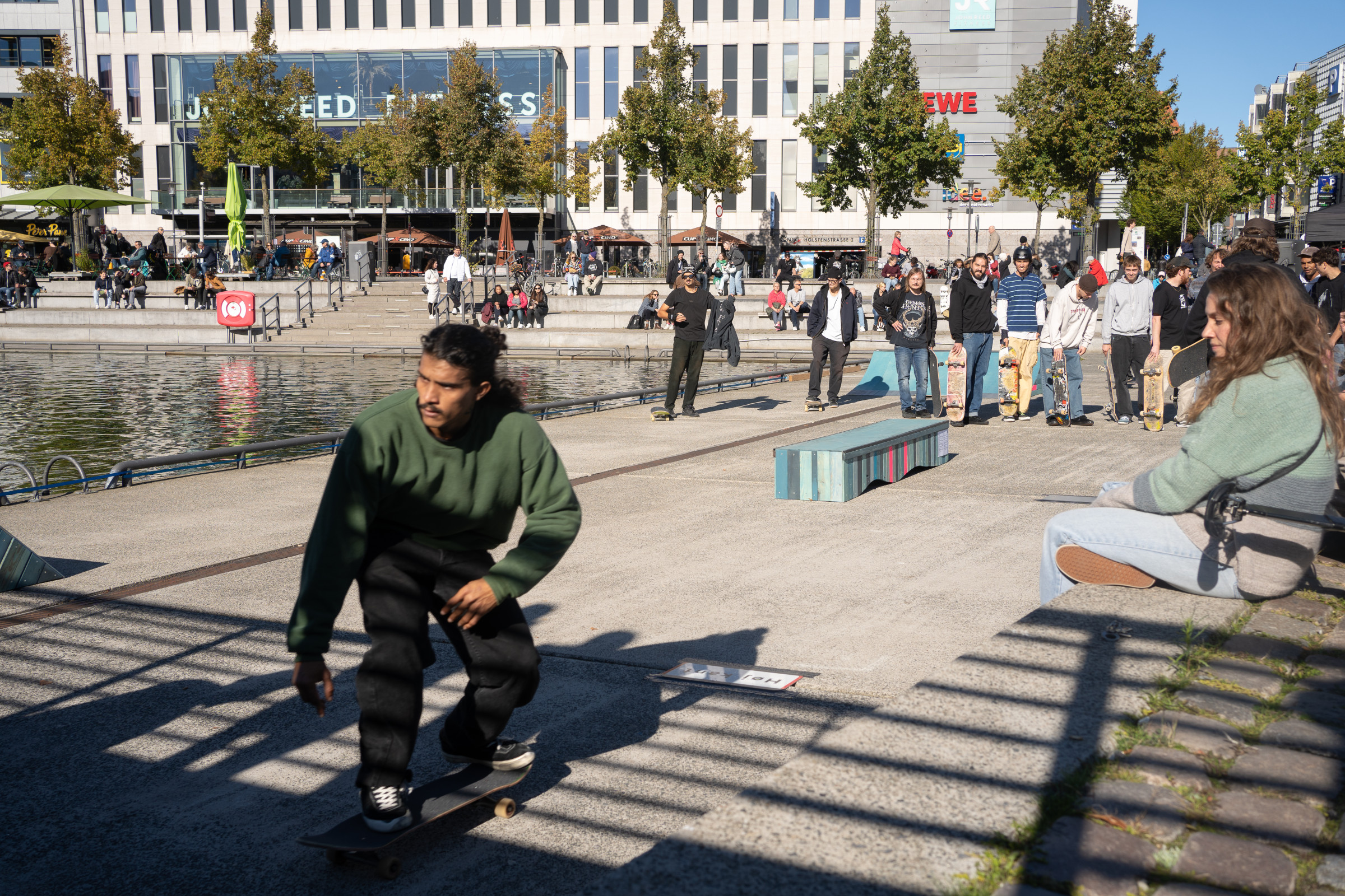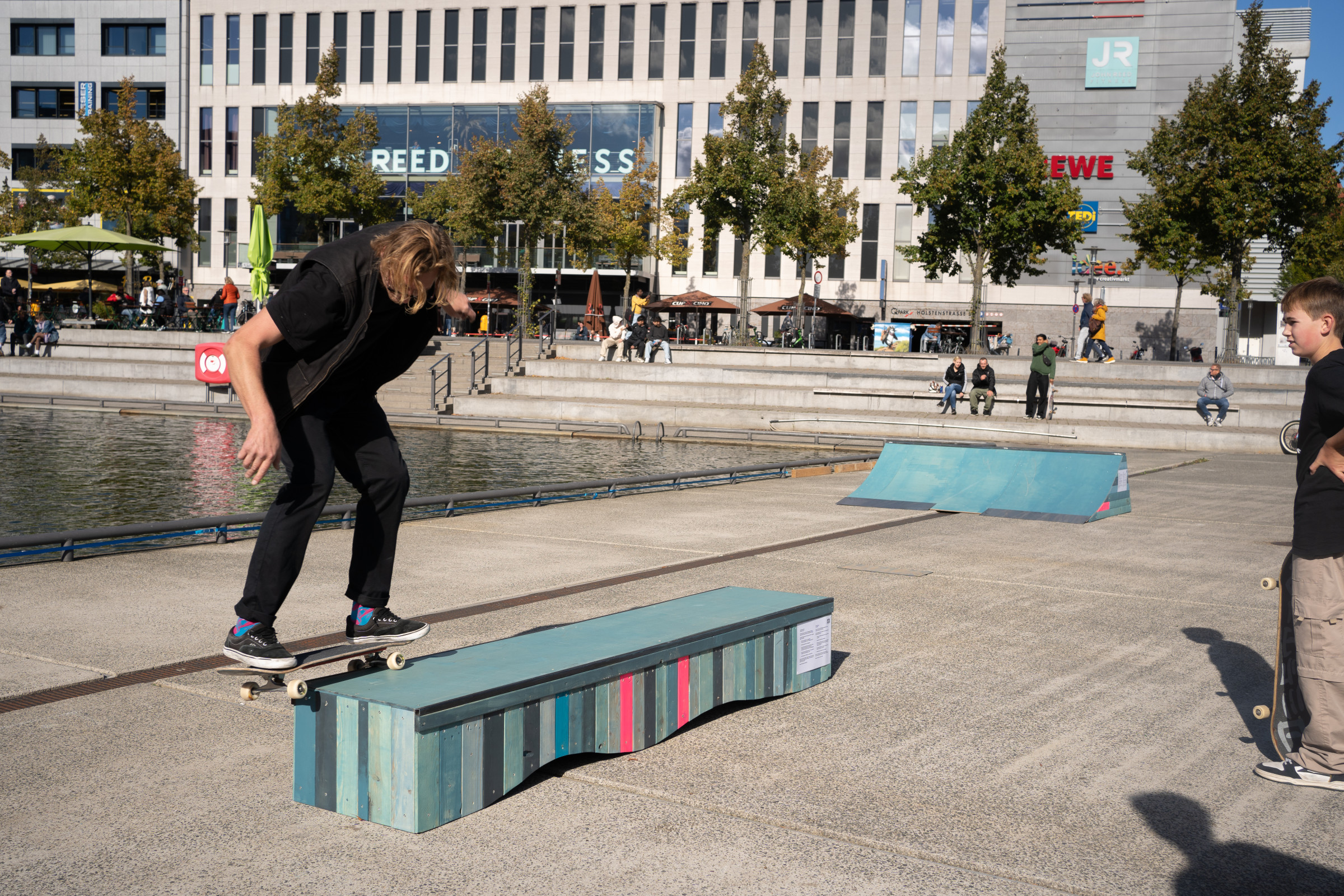 Zu Eröffnung und Finissage wird die Skulptur zur Bühne für Skate Performances professioneller Skater*innen, die die „Welle“ für ihre Kunst nutzen.
