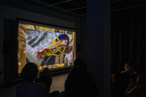 Begleitet von Keramikskulpturen mit verwandten fantastischen Bildwelten, interpretiert „U Scantu“: A Disorderly Tale“ das Magische, Ritualistische und Widerspenstige als Kräfte, die eine Vorstellungskraft jenseits vorgegebener Kategorien von Menschlichkeit, chronologischer Zeit und mythologischer Weiblichkeit erzeugen.