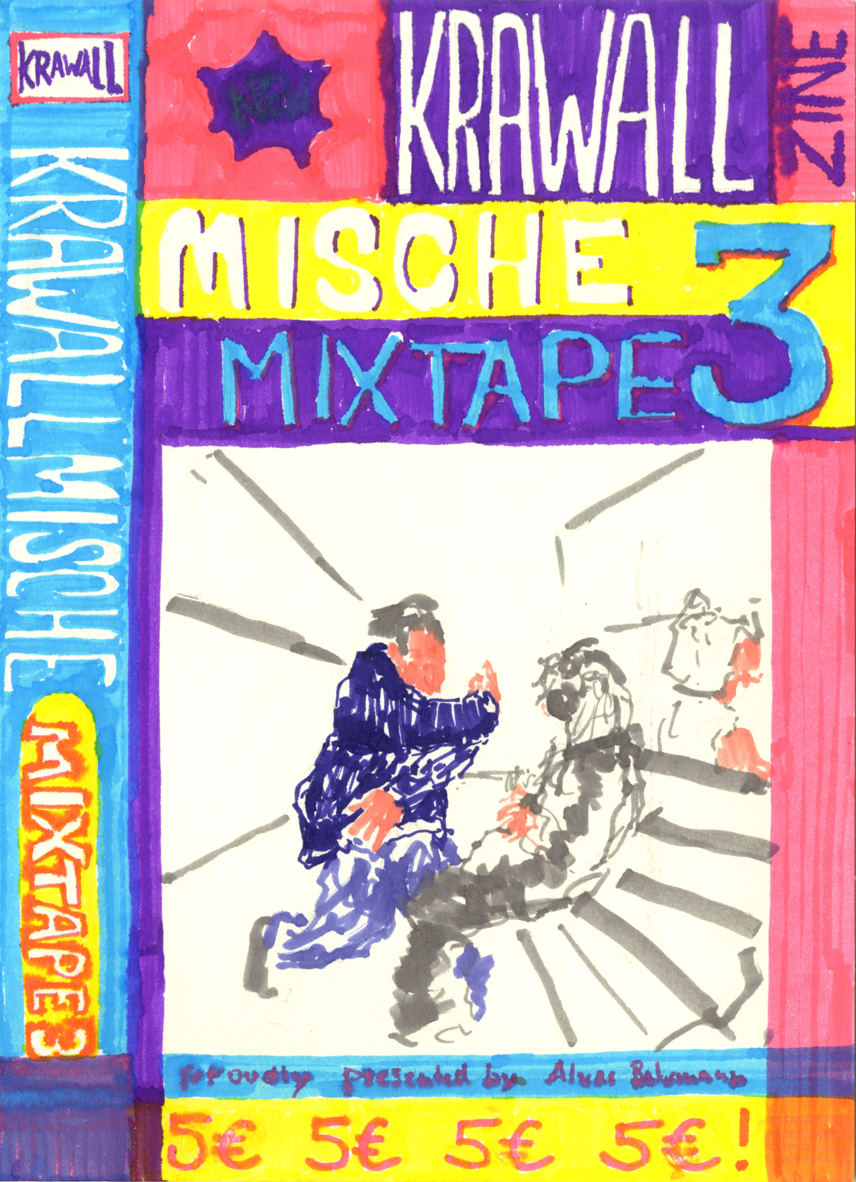 Krawallmische ist im klassischen Sinne ein Zine, eine selbstpublizierte Zeitschrift, autonom und nur in kleiner Auflage verlegt. Initiiert wird Krawallmische von Alvar Bohrmann, erschienen sind bereits fünf Ausgaben, die mehr als 60 Künstler:innen zusammengeführt haben. Zeit für einen ersten Rückblick mit einer Ausstellung der originalen Zeichnungen, nur dabei soll es natürlich nicht bleiben.