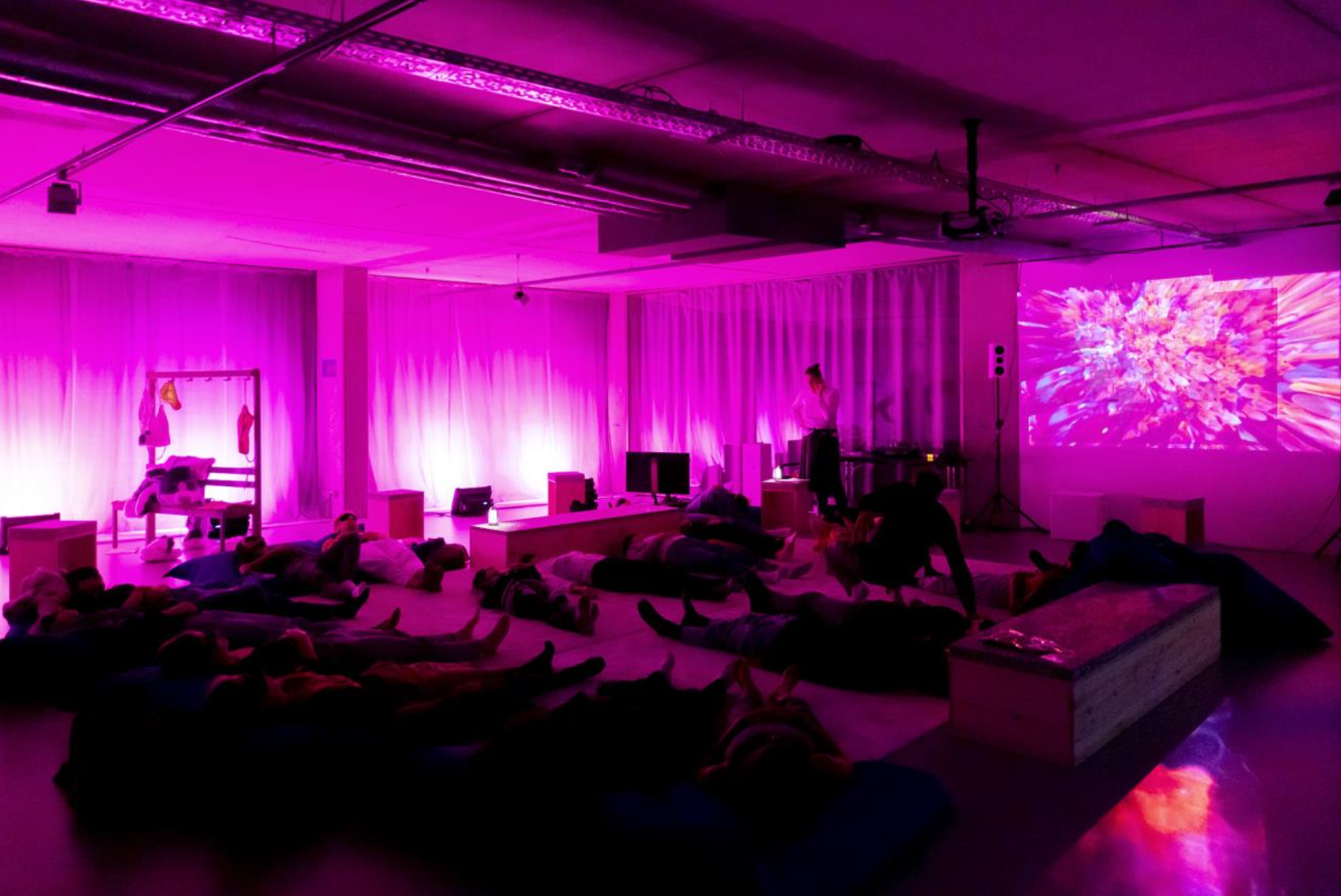 Die hypnotische Führung wird liegend auf dem Boden praktiziert. Sie dauert 45 Minuten und findet in englischer Sprache statt.