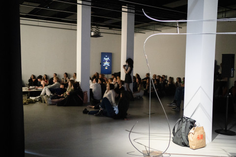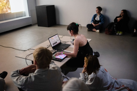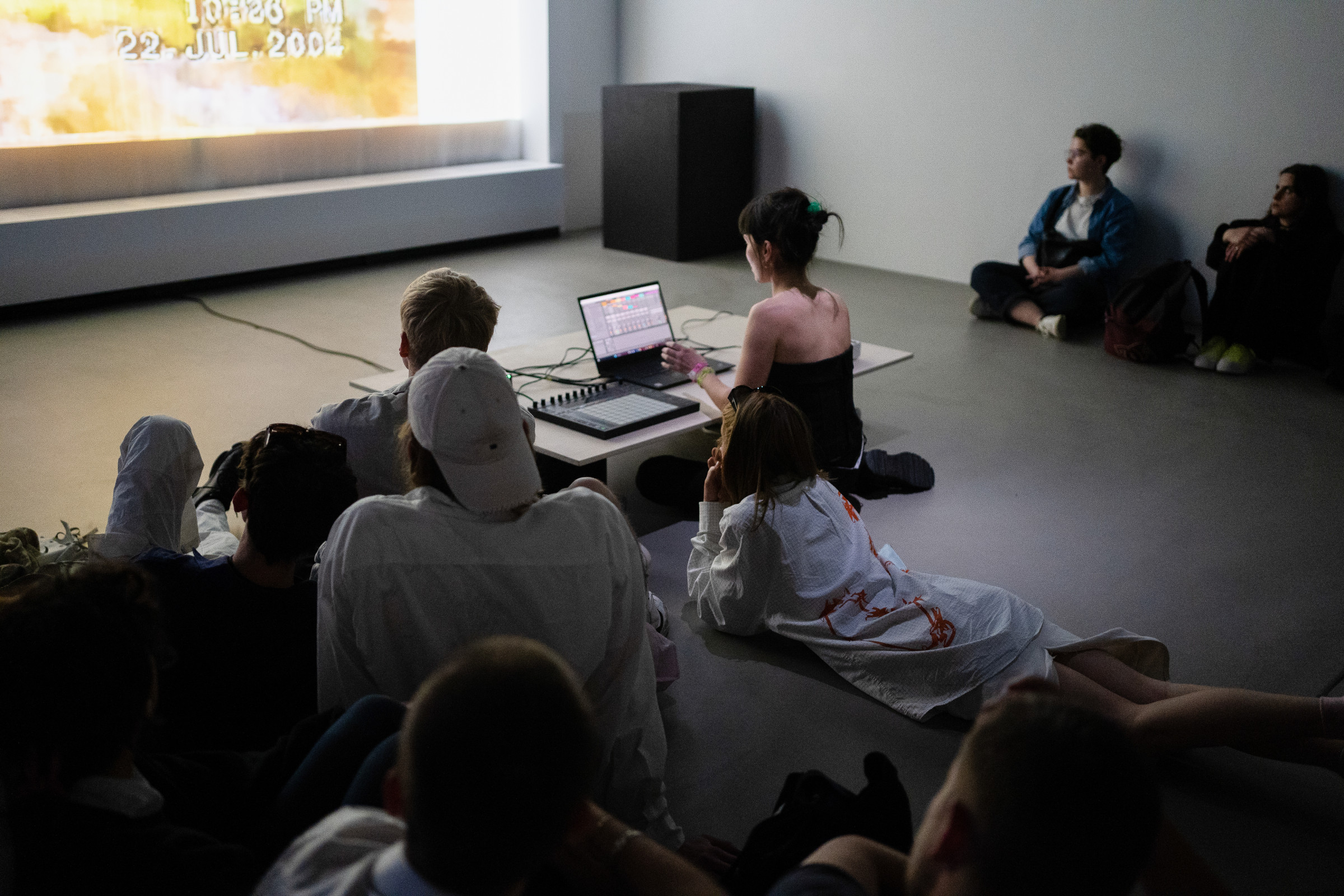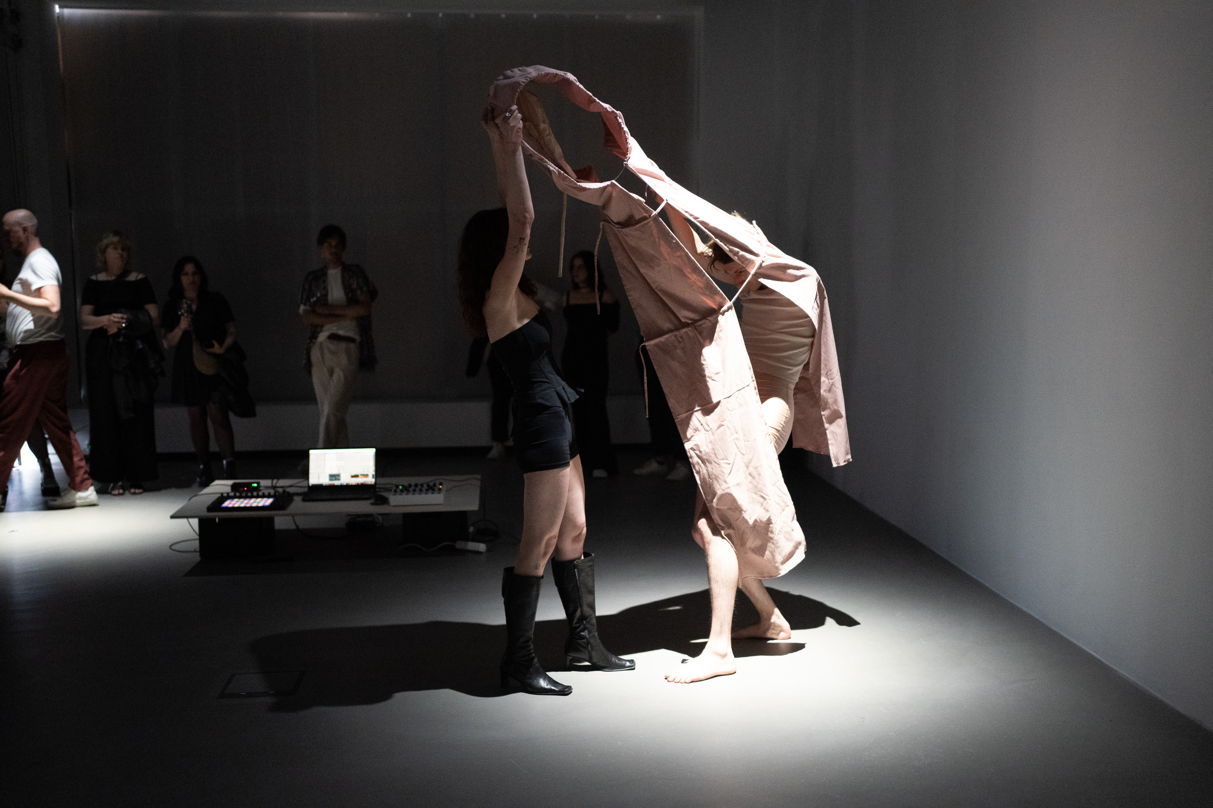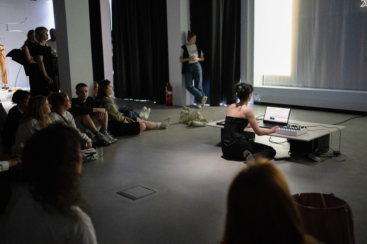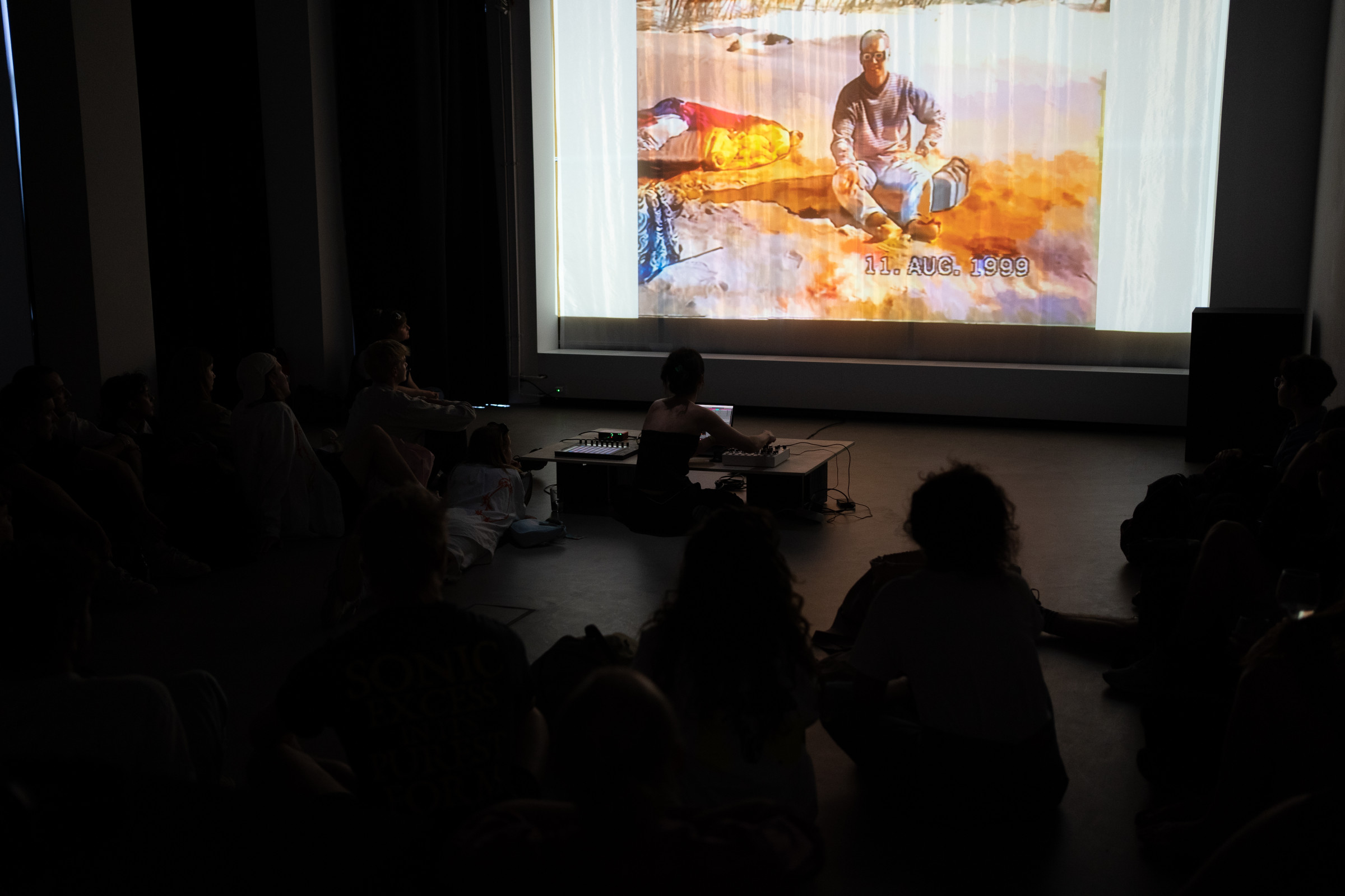56Am finalen Tag der Ausstellung Klangkulisse – The Sound of(f)... widmet sich ein Performanceabend mit Lea Maginski und Luisa Lukas der Thematik emotional behafteter Erinnerungsstrukturen.