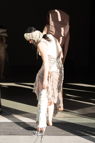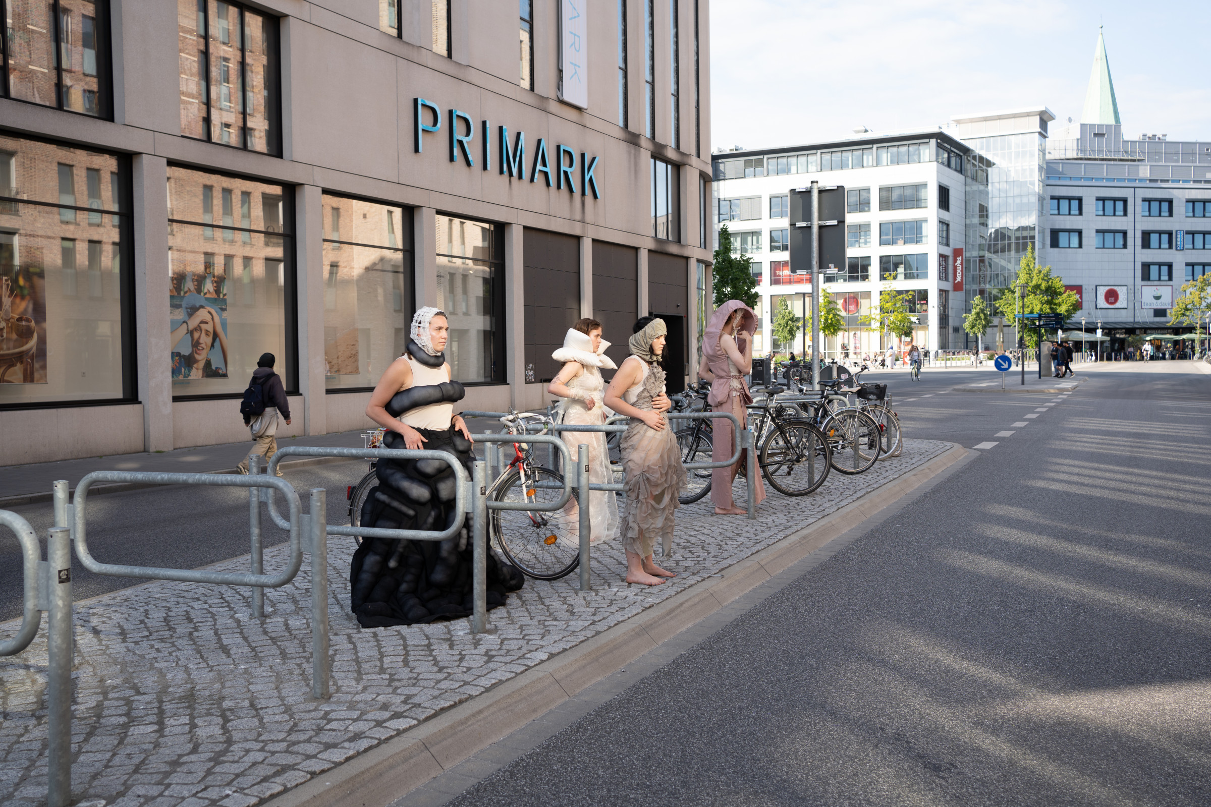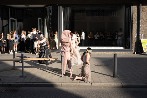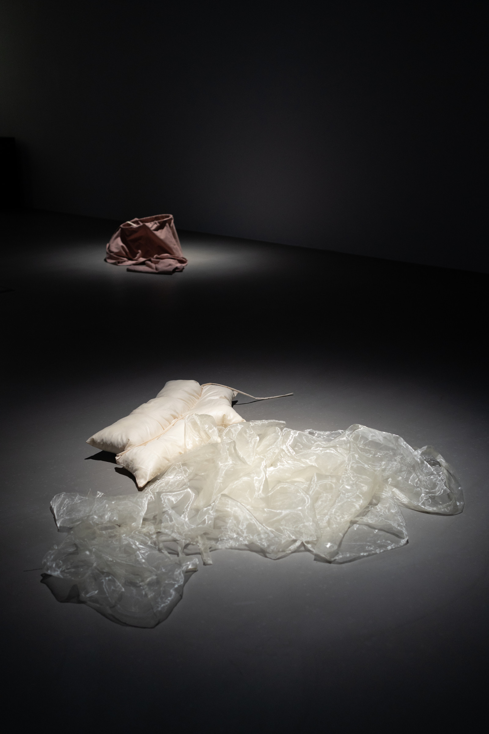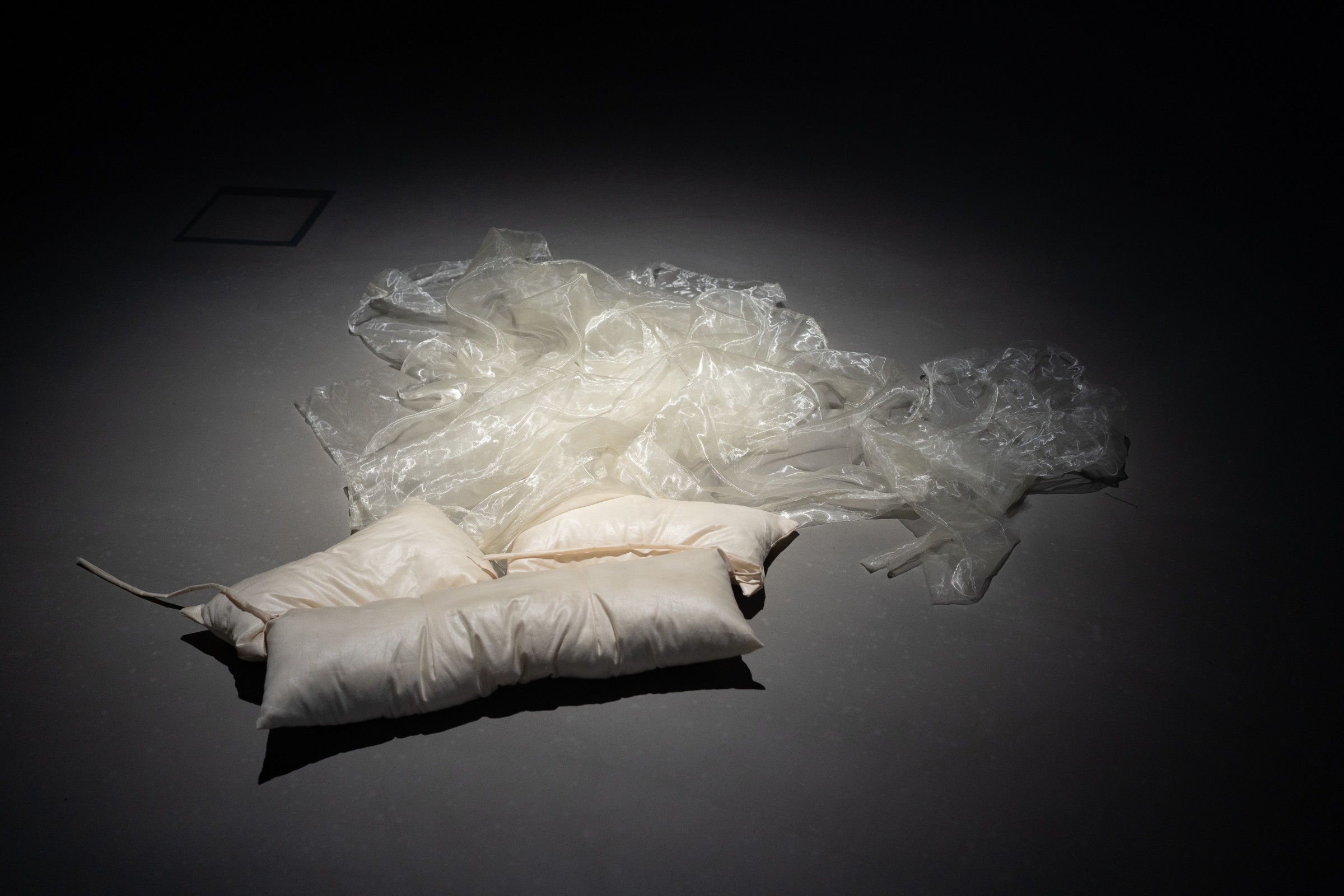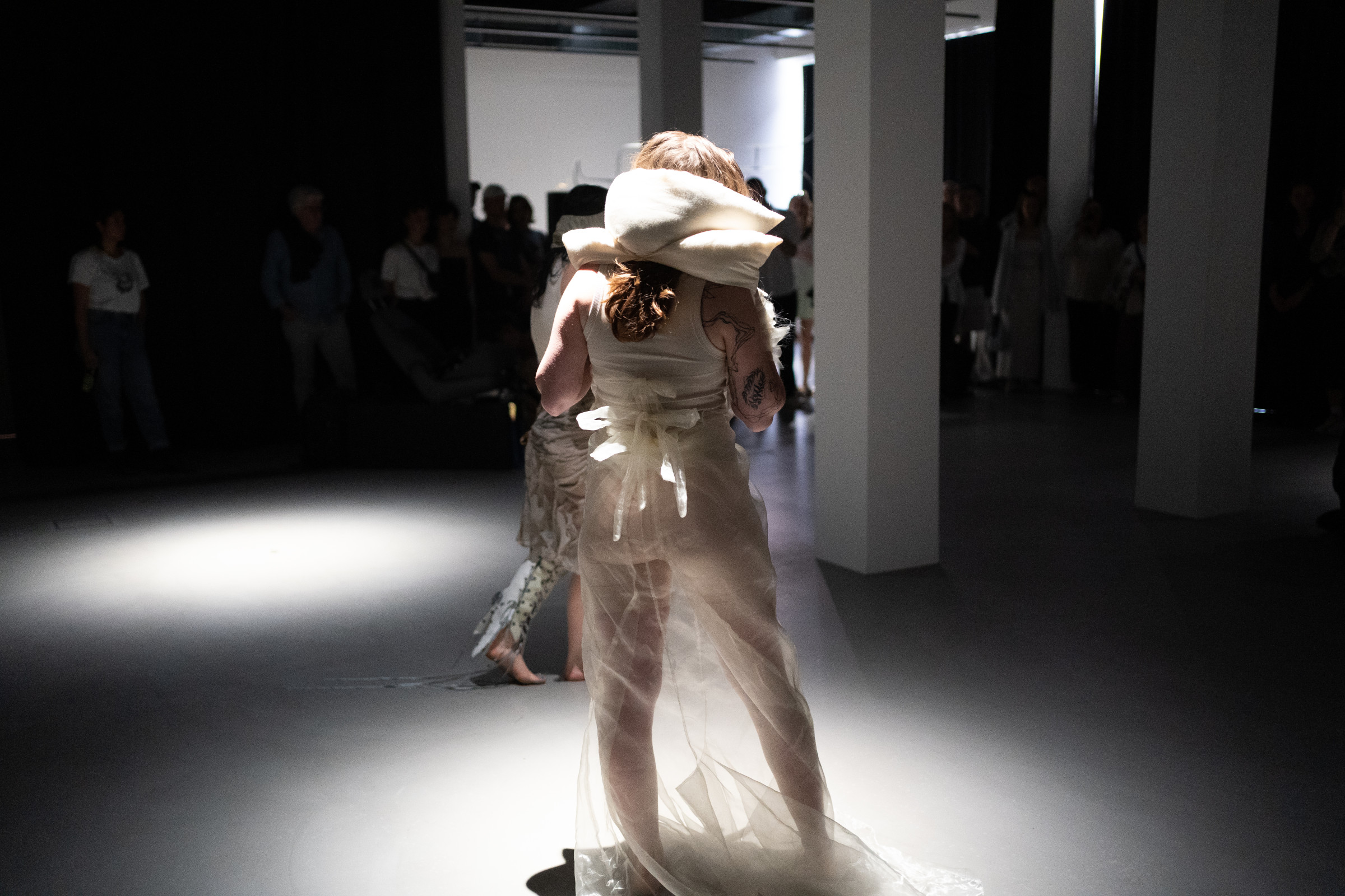 Lea Maginskis Projekt Intrauterin besteht aus vier Kostümen. Es setzt sich mit pränatalen Traumata und dem dabei entstandenen Ohnmachtsgefühl auseinander. Die Kostüme übersetzen vage Erinnerungen und Gefühle, für die nie Worte gefunden werden können, in greif- und fühlbare Objekte. Die visuelle Erscheinung rückt hierbei zunächst in den Hintergrund, von Bedeutung ist die haptische Ebene. Wie fühle ich mich mit den angezogenen Kostümen? Welche möglichen Erinnerungen verbinde ich damit? Für spce | Muthesius werden die skulpturalen Kostüme nun in einer Performance inszeniert, emotional aktiviert und interaktiv erfahrbar.