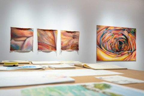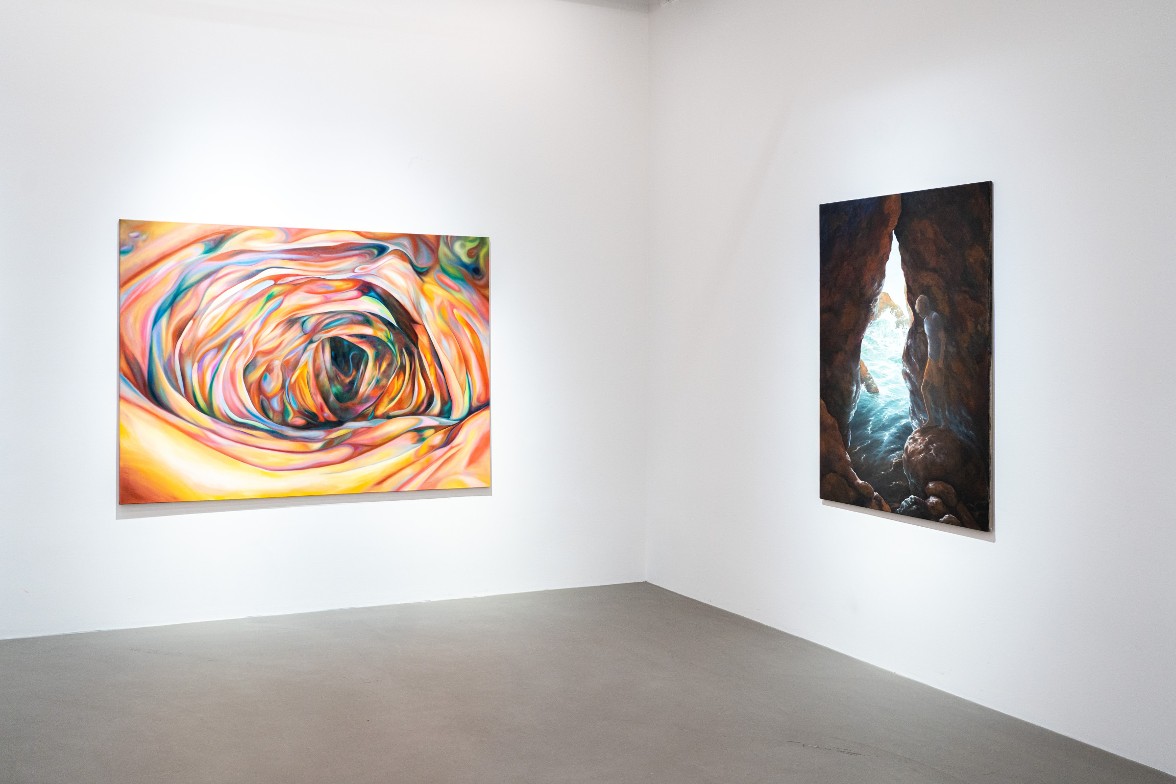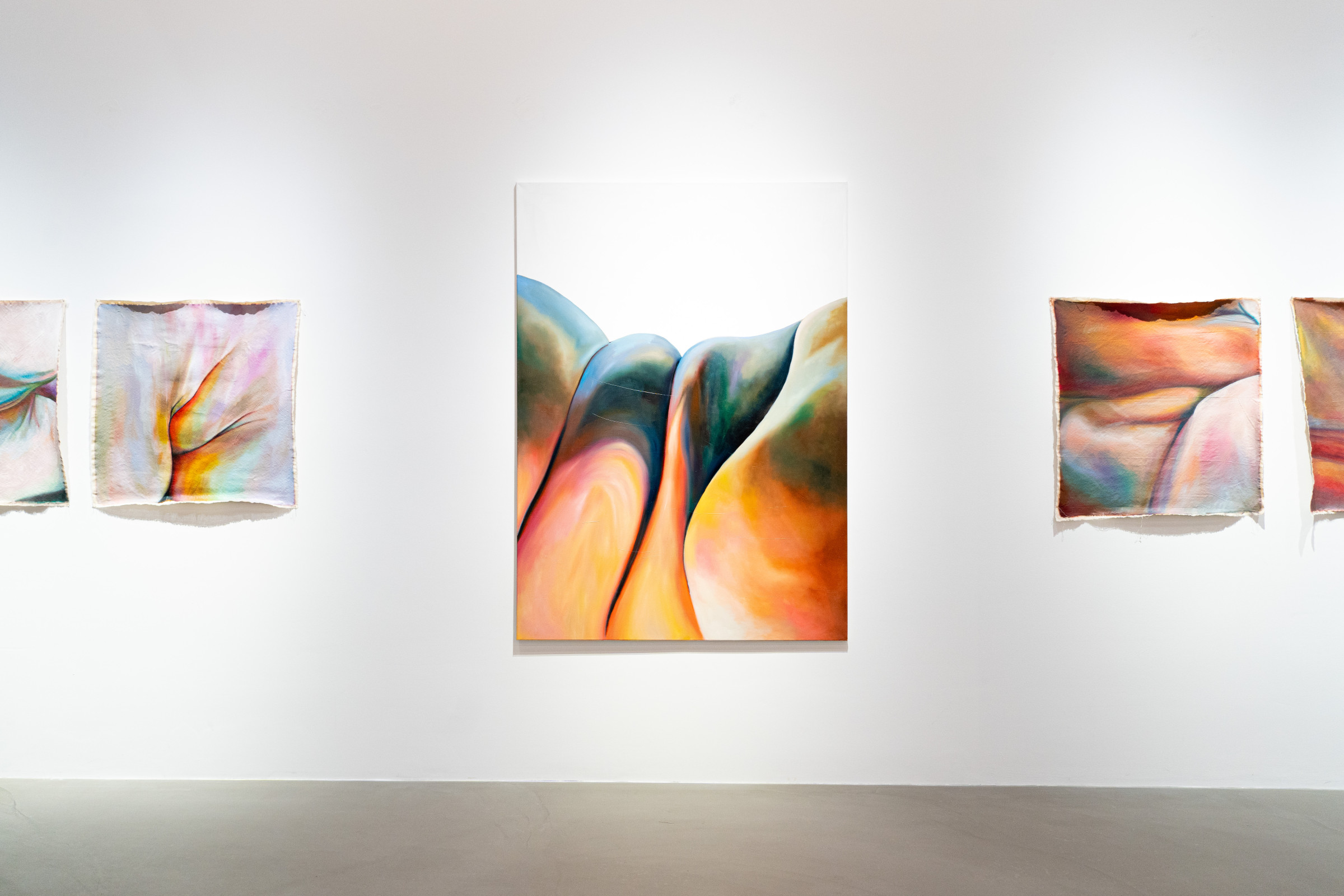 Ausgang der seriellen Arbeiten Skins (2021) und Skinny (2022) ist die Studie des eigenen Körpers, der mittels Videokamera in Nahaufnahme erforscht, abgescannt wird. Die daraus entstehenden Bilder, die sich oft durch eine gewisse Unschärfe auszeichnen, werden dann auf die Leinwand übertragen und nehmen dort wieder einen ganz eigenen Raum ein, werden zu Abstraktionen, die den Körper und dessen Identität auflösen und verschwinden lassen.