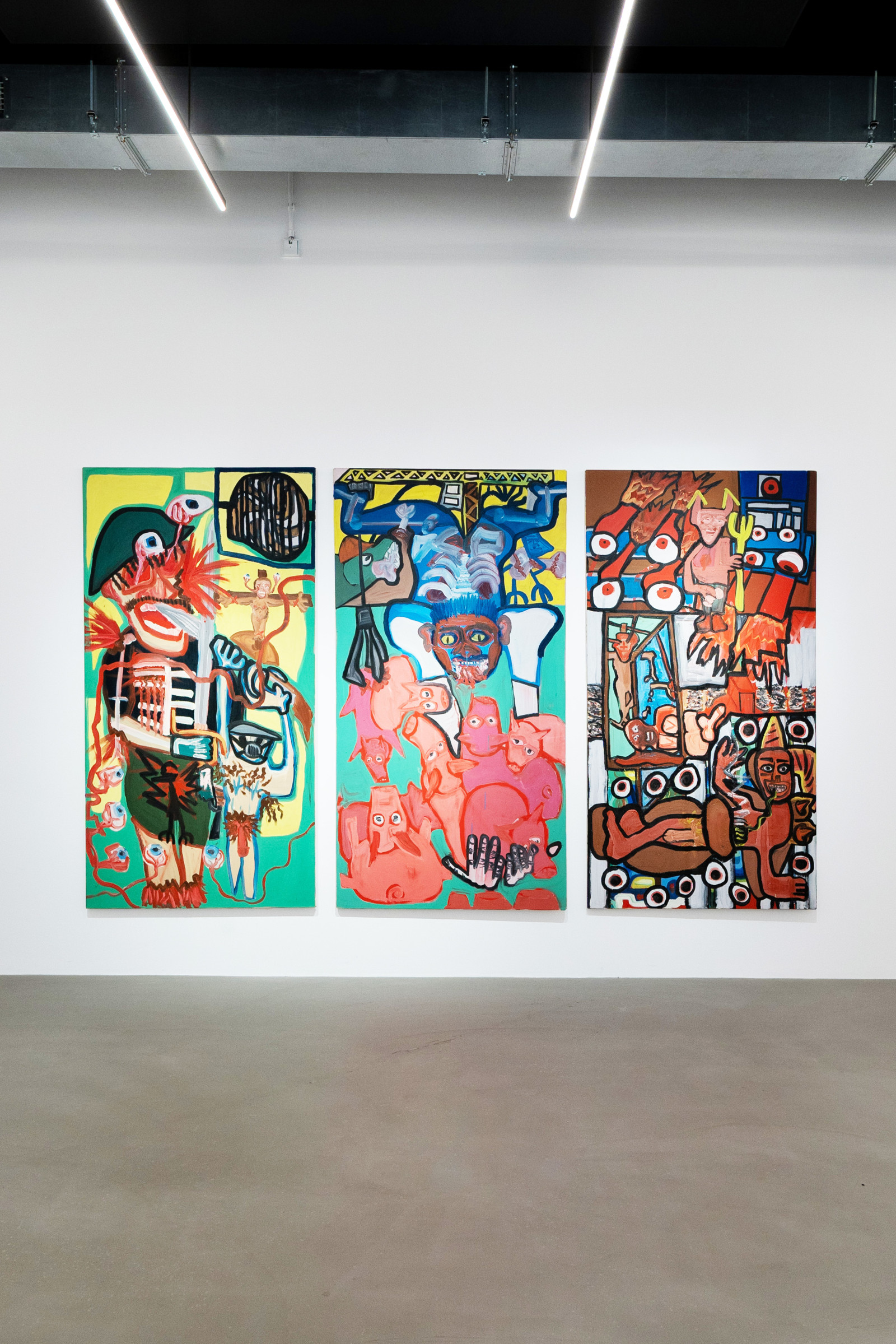 „Peng voll in die Fresse“, „Die süßen Schweinis“, „Opiumhölle“ - Triptychon von Leonard Gneuss