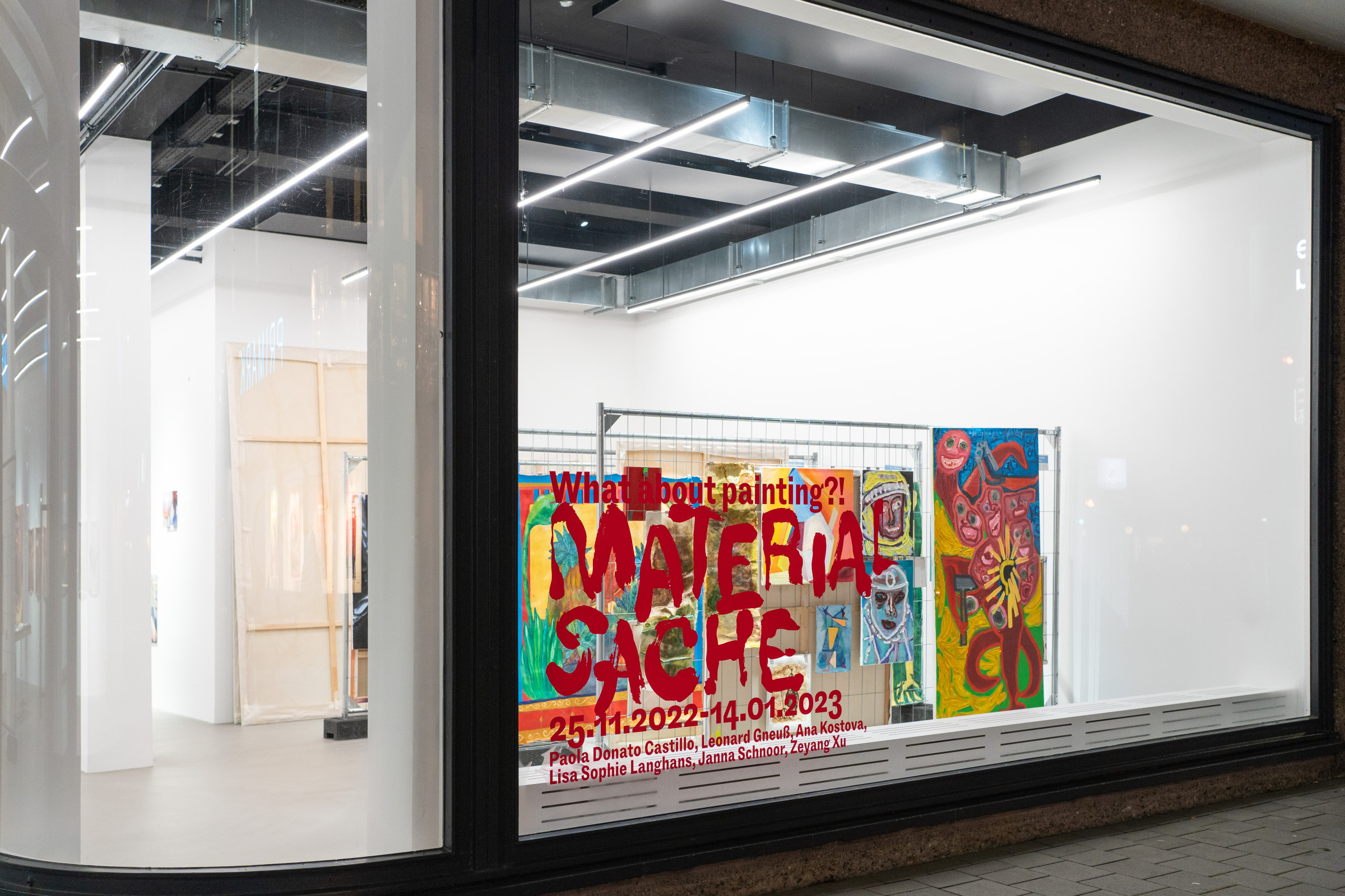 Ein transparentes und begehbares Gemäldelager mit Arbeiten aller beteiligten Künstlerinnen wird über die gesamte Laufdauer der Ausstellung das Nebeneinander verschiedener Ansätze betonen, im Verständnis, dass Malerei vielfältig, vielschichtig, und nicht auf Gemälde reduzierbar ist.