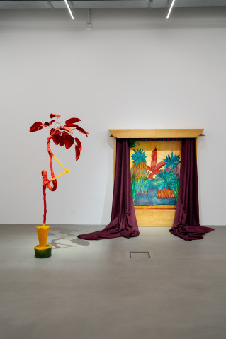 In der Multimedia-Installation transplanta (2022) fügt sie eine Malerei, die hinter einem Fenstervorhang wie auf einer Bühne inszeniert ist, eine Skulptur einer fiktiven Pflanze sowie eine Sound-Arbeit zu einer exotischen Landschaft. Es handelt sich wie so oft in ihren Arbeiten um eine Metapher, um Science-Fiction.