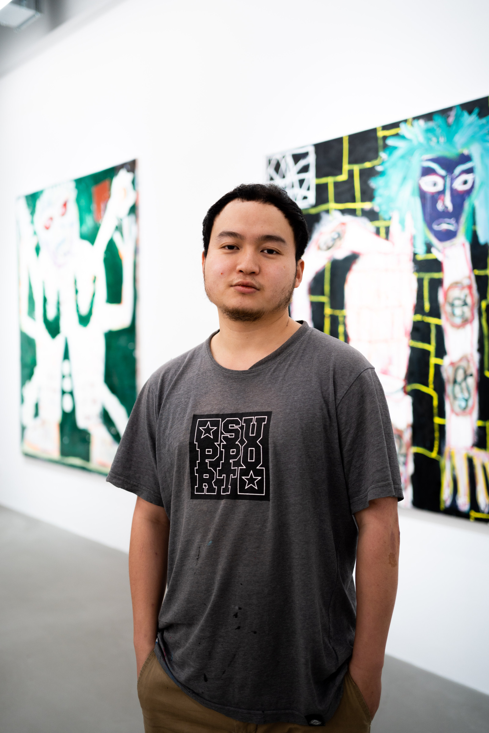Zeyang Xu (*1993, CHN) studiert in der Klasse Grafik von Professor Piotr Nathan. Seine Arbeitsweise hat etwas Manisches, Getriebenes. Sobald er ein Thema für sich entdeckt hat - sei es die Erfahrung eines japanischen Nabuki-Theaters oder der Besuch der raumgreifenden Ausstellung Space Programs: Rare Earths von Tom Sachs in den Deichtorhallen - wird dieses in einer Reihe von Malereien abgearbeitet im Versuch, sich dem Wesen einer Sache zu nähern.