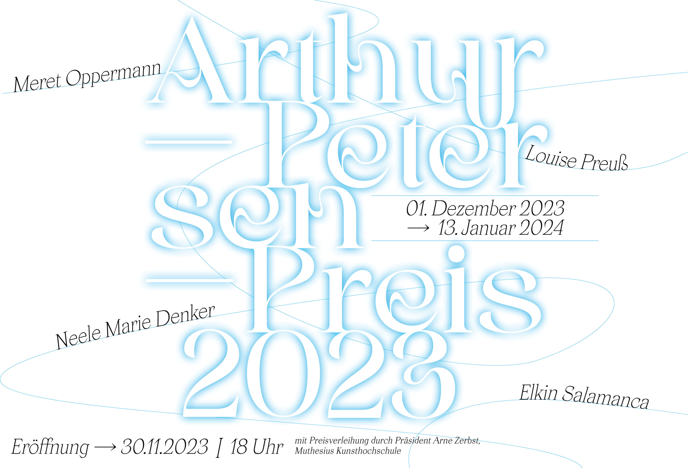 The Arthur Petersen Prize will be awarded for the first time in fall 2023. It is endowed with a total of 10,000 euros. The prize is awarded by the art academy's scholarship jury for special artistic or design achievements from each degree program at the Muthesius Academy of Fine Arts and Design. Four prizes of 2,500 euros each are awarded to selected final theses or final projects by Master's graduates.
