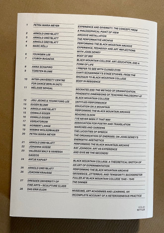 The symposium publication of the Muthesius Kunsthochschule is dedicated to this legendary university for the first time in two particular ways. One happening through Arnold Dreyblatt’s art project “PERFORMING the Black Mountain ARCHIVE”, in which students from European art academies were invited to reactivate through their artistic work, especially performative processes an archive Dreyblatt had created over decades about the Black Mountain College (in the sense of a "living archive").