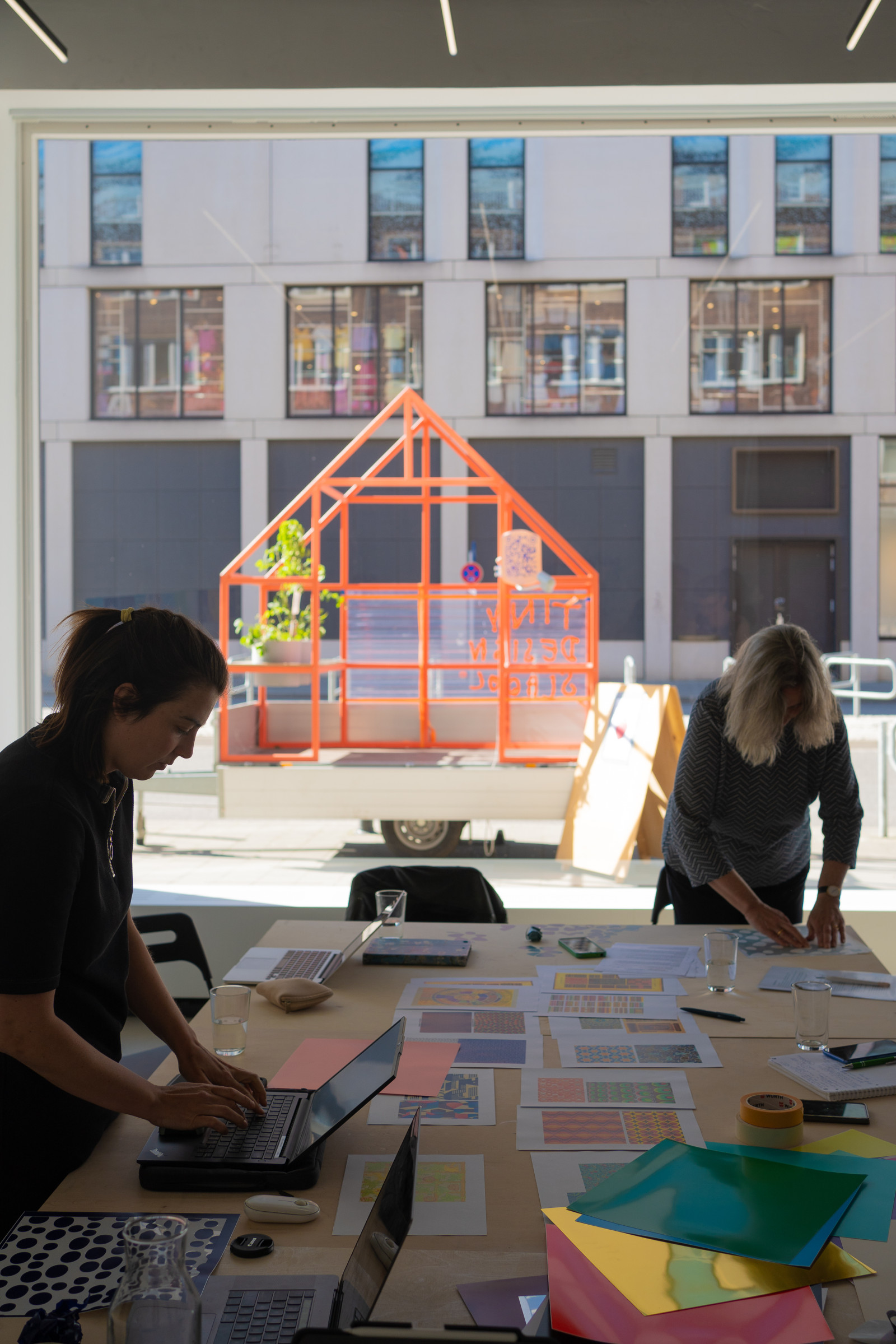 The Tiny Design School will be an art school on wheels that travels through Schleswig-Holstein and teaches design. Our target group is school students, people with an interest in design and creation and people who might want to study or work at the Muthesius Academy of Fine Arts and Design. As a sub-project of the Digital Learning Campus, we want to experiment with new educational formats in the DLCAL.