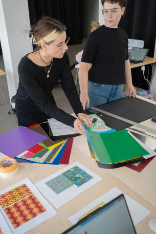 In the workshop, we will create our own wallpapers using generative AI and cut them out with the Cricut, a cutting plotter. Digital wallpapers are also possible. Different styles will be explored and there will be a short excursion into the design history of wallpaper. We will learn how to create prompts and patterns that can be transferred to a material.