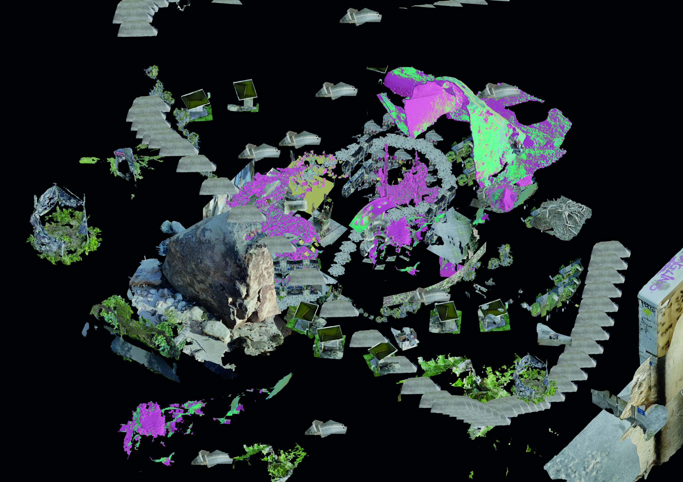 The result is a multi-media installation that combines various non-locations in a digital landscape. Loosely related places are related to each other beyond geographical distances. The archive grows steadily and continuously and brings together dozens of non-places that remain in a dysfunctional state of suspension and that is precisely why they exert a completely unique fascination. The archive is used for artistic research and forms the future basis for further work and collaborations.