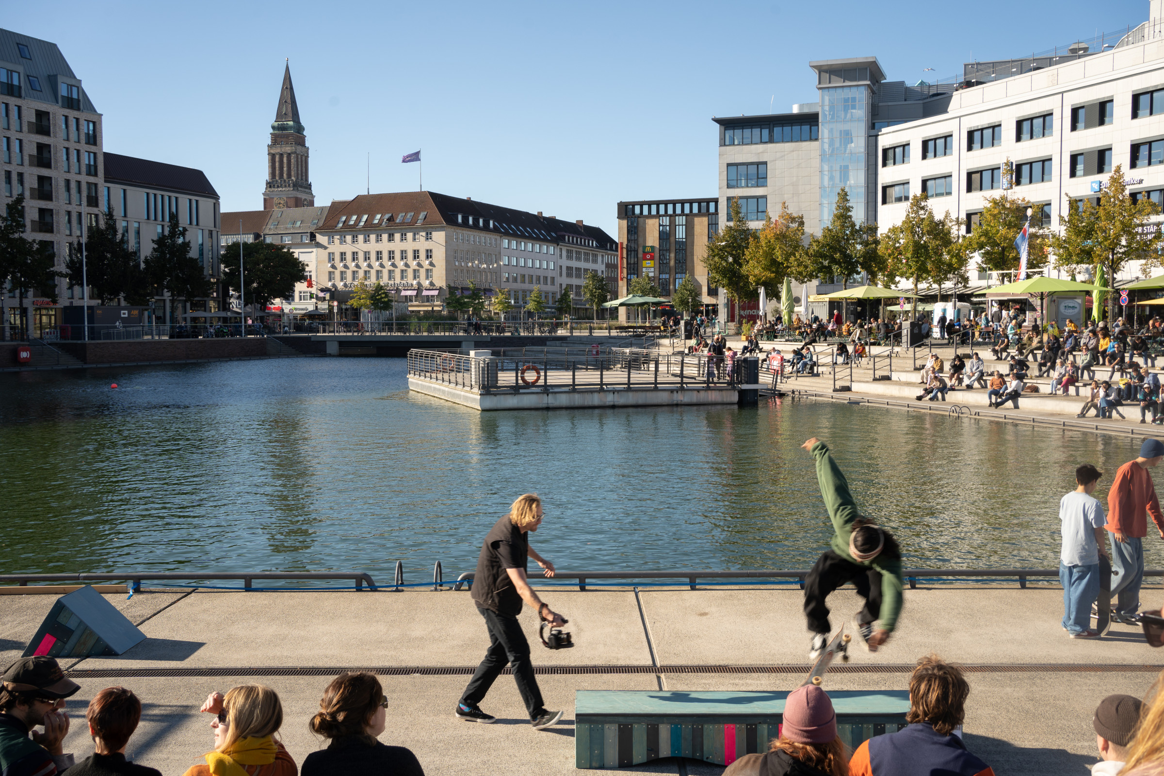 With his sculpture, Anders Prey wants to encourage an open approach to skateboard culture and symbolically bring the sea back to Kiel's city center. The harbor and the Kleiner Kiel once formed a branch of the Kiel Fjord, the sea water flowed naturally and surrounded almost the entire old town area. Kanagawa's Revengedraws attention to today's separation and reminds us how interventions in the infrastructure have far-reaching consequences for the river and the lifeblood of a city.
