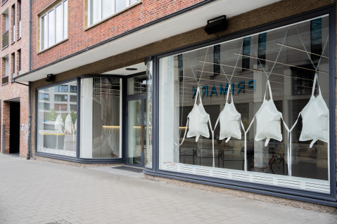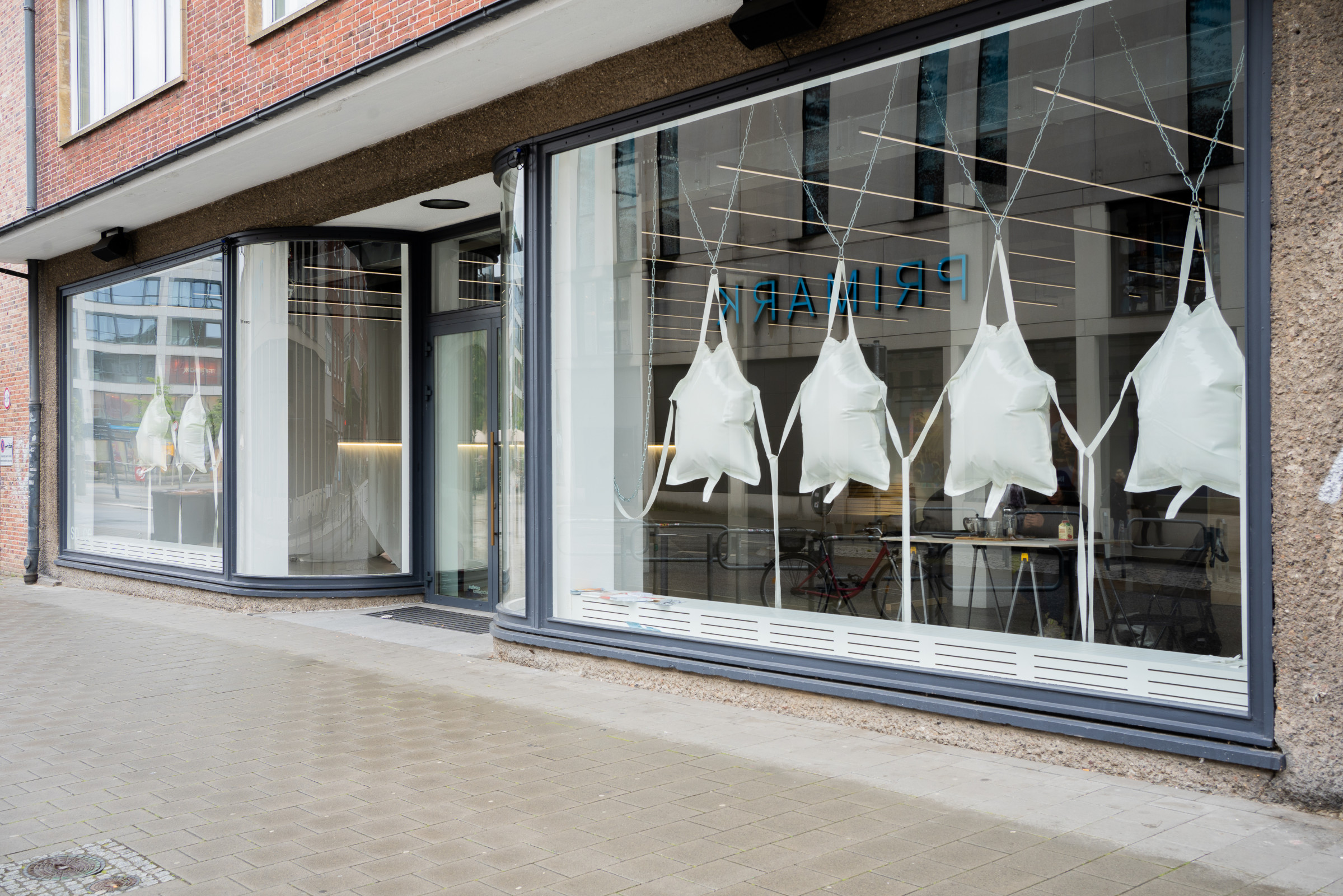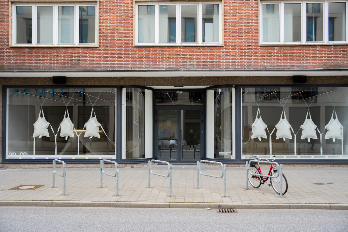 128A Dance for Increasing Distances is a sculptural installation that creates an illustrious dance across the entire window front of the sp ce | Muthesius.