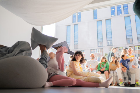 The exhibition atmospherically envelops the audience and provides a refuge to feel like a child again.